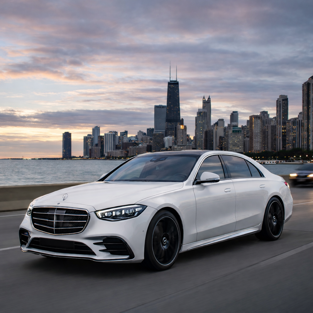 The 2026 S-Class delivers premium Chicago limo service for executive transportation, airport transfers, weddings, and VIP events throughout the city and surrounding suburbs. Its refined interior, advanced comfort features, and smooth performance make it an ideal choice for clients seeking luxury chauffeur service in Chicago.